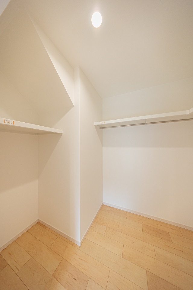クローゼットが寝室の一角にまとまっているため、収納スペースとくつろぐ空間を分けて使えます。 生活感が出にくいのもポイントです。 棚とハンガーパイプを組み合わせ、衣類の種類に応じて収納できます。 服を選ぶ・出し入れするといった動作がスムーズです。