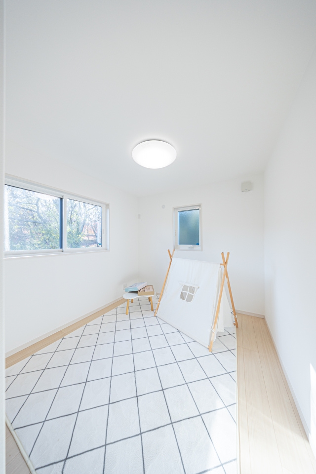 子ども部屋としても、在宅ワークや趣味部屋としても使えるサイズ感です。 窓を複数設けることで、日中は自然光だけでも明るさを確保できます。